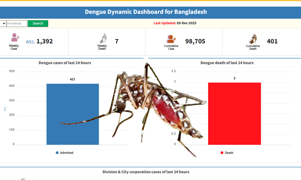 চলতি বছরে এখন পর্যন্ত ডেঙ্গুতে ৪০১ জনের মৃত্যুর: স্বাস্থ্য অধিদপ্তর