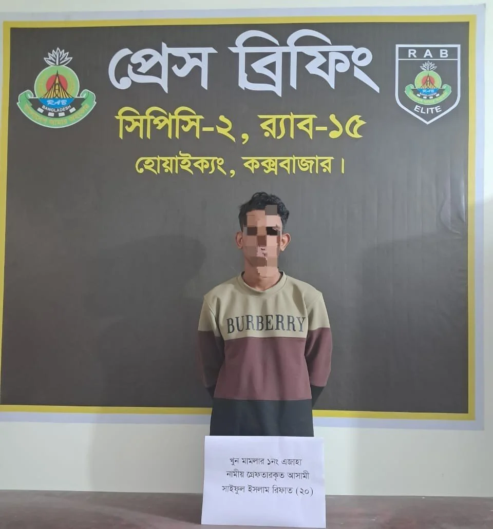 উখিয়ার জালিয়াপালং ইউনিয়নের আলোচিত সৈয়দ হোসাইন হত্যা মামলার প্রধান আসামি সাইফুল ইসলাম রিফাত (২০) কে গ্রেফতার করেছে র‌্যাব।র‌্যাব-১৫ এর সহকারী পরিচালক আ. ম. ফারুক বিষয়টি নিশ্চিত করেন।